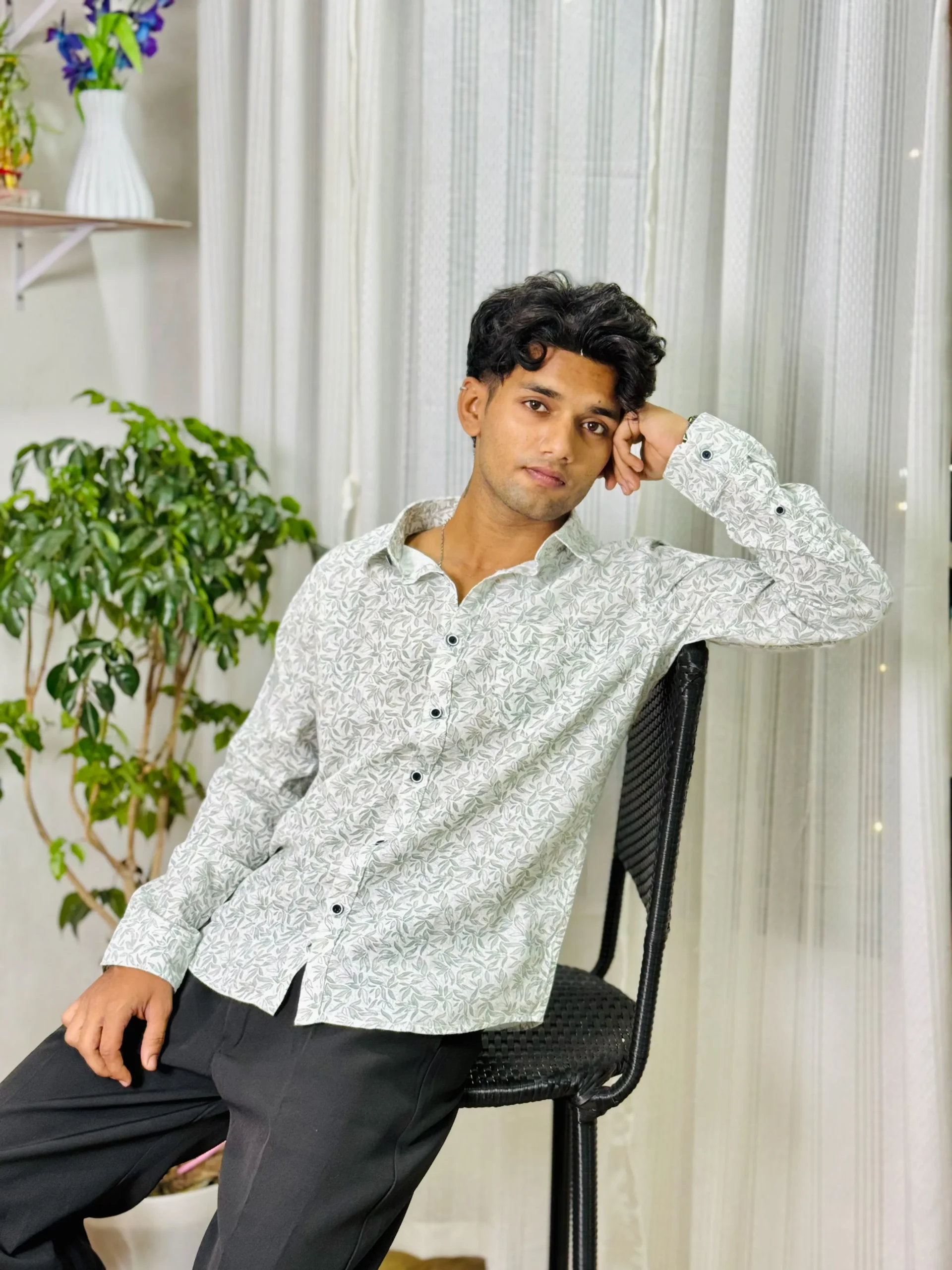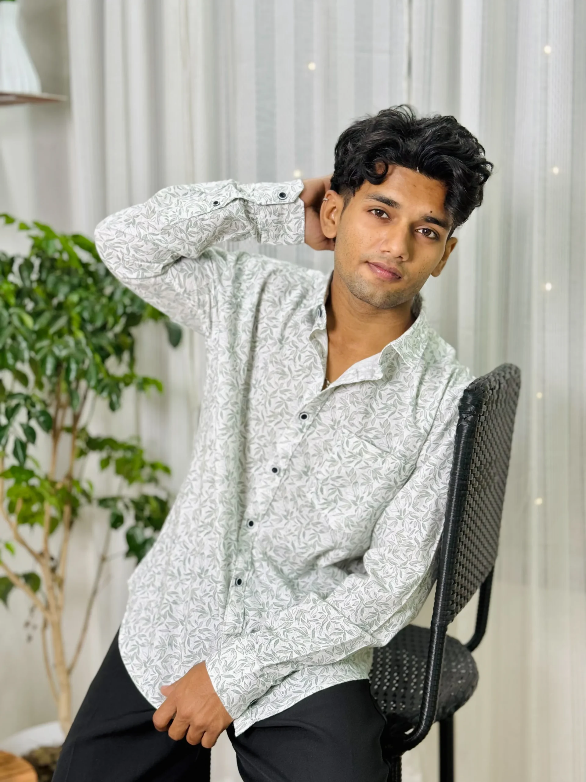 Upgrade your style with this green leaf-printed shirt made from 100% soft cotton. The unique leafy pattern delivers a cool, nature-inspired vibe while keeping things effortlessly casual. Lightweight and breathable, it’s perfect for everyday wear and relaxed social gatherings.