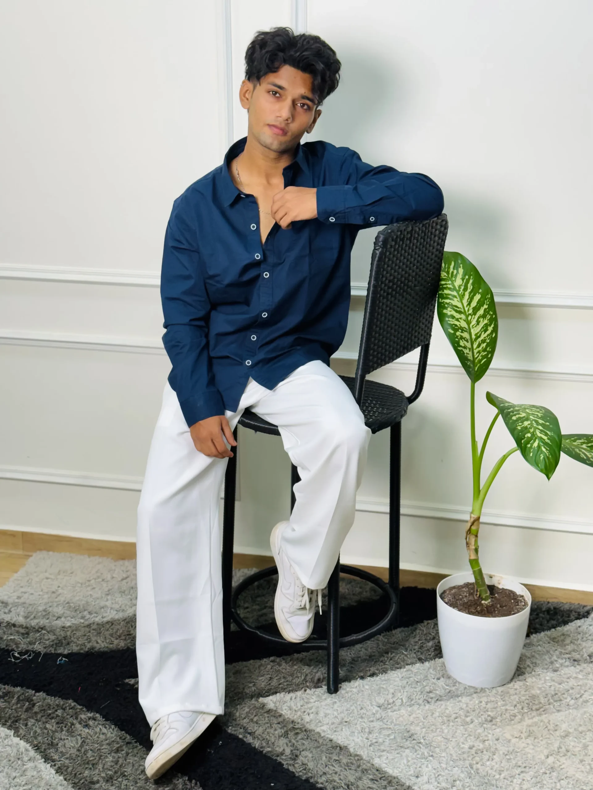 Refresh your wardrobe with this stylish men’s navy blue shirt, tailored from 100% pure cotton for unparalleled comfort and breathability. The deep navy hue and classic button-down design make it an essential piece for any occasion—whether casual or dressed up. The versatile look pairs perfectly with light or dark trousers for a sharp, contemporary appearance.