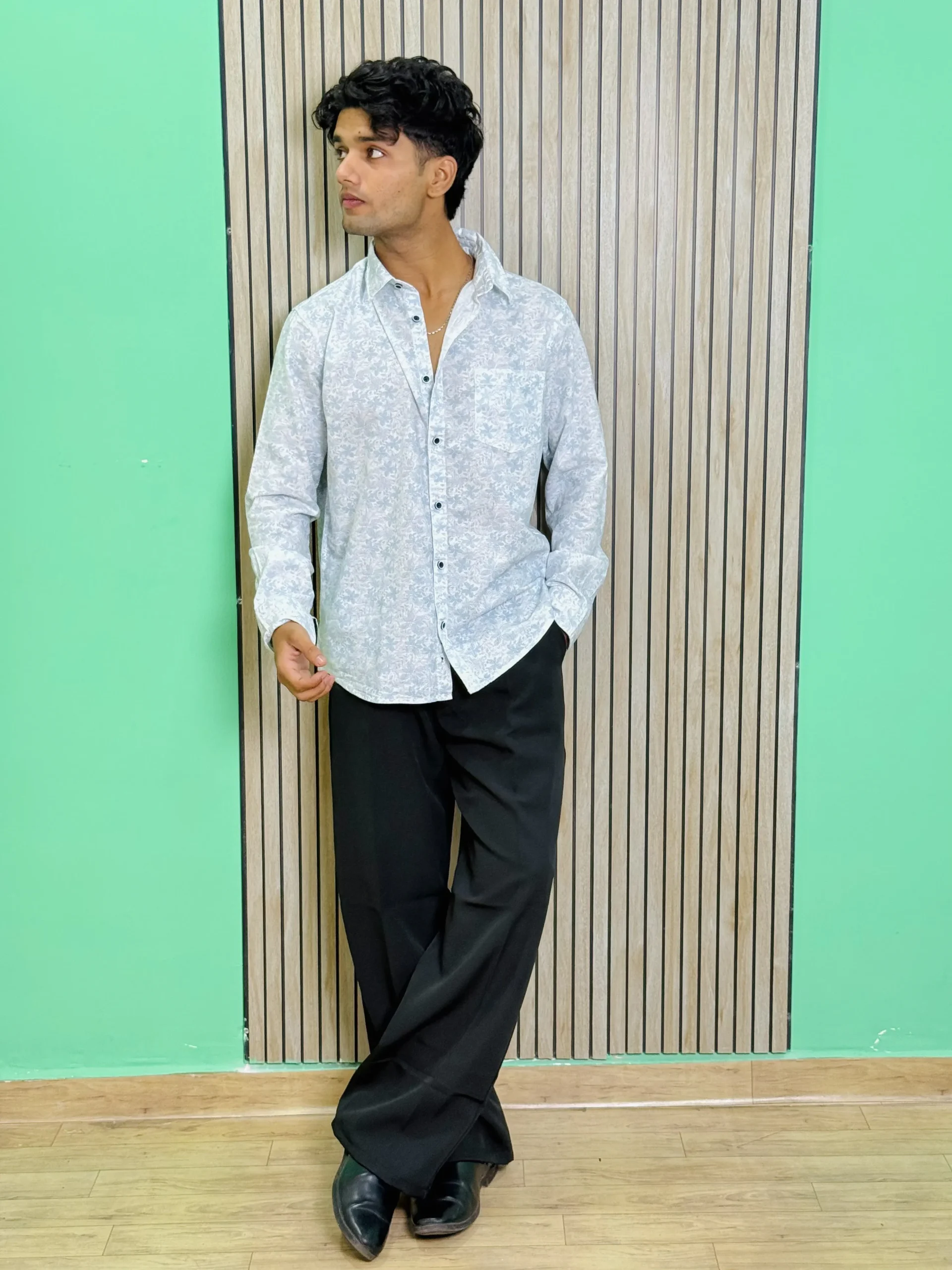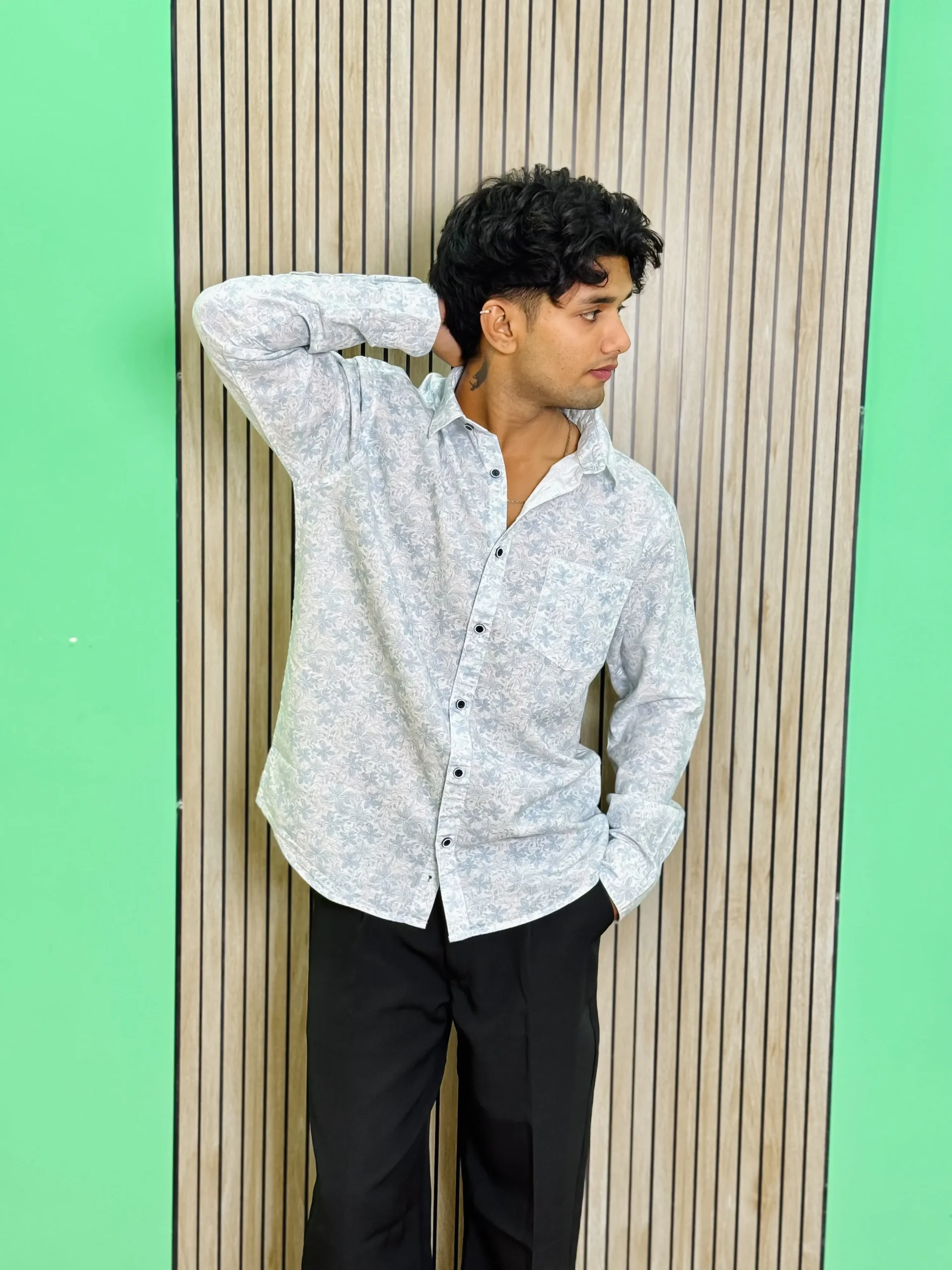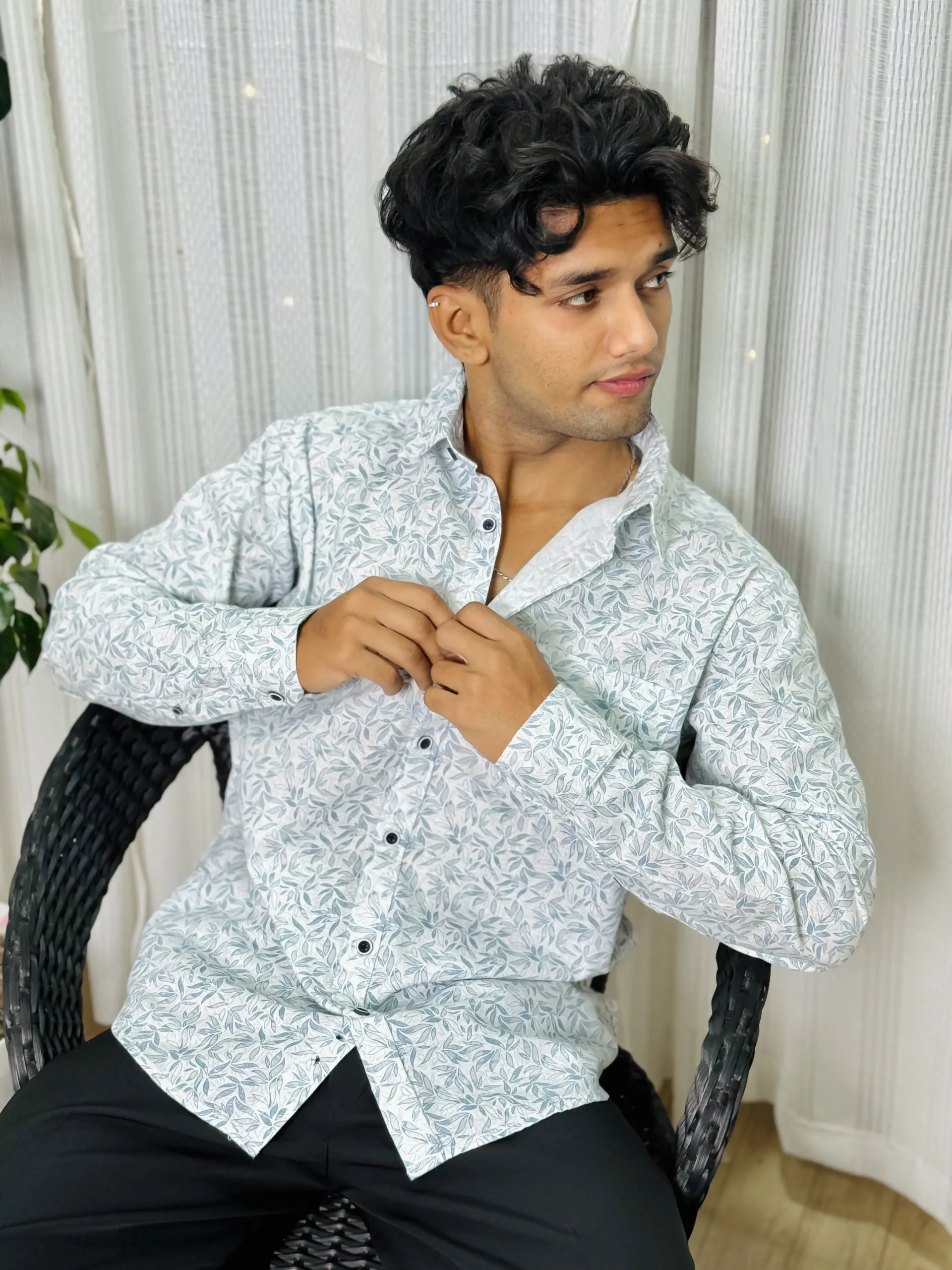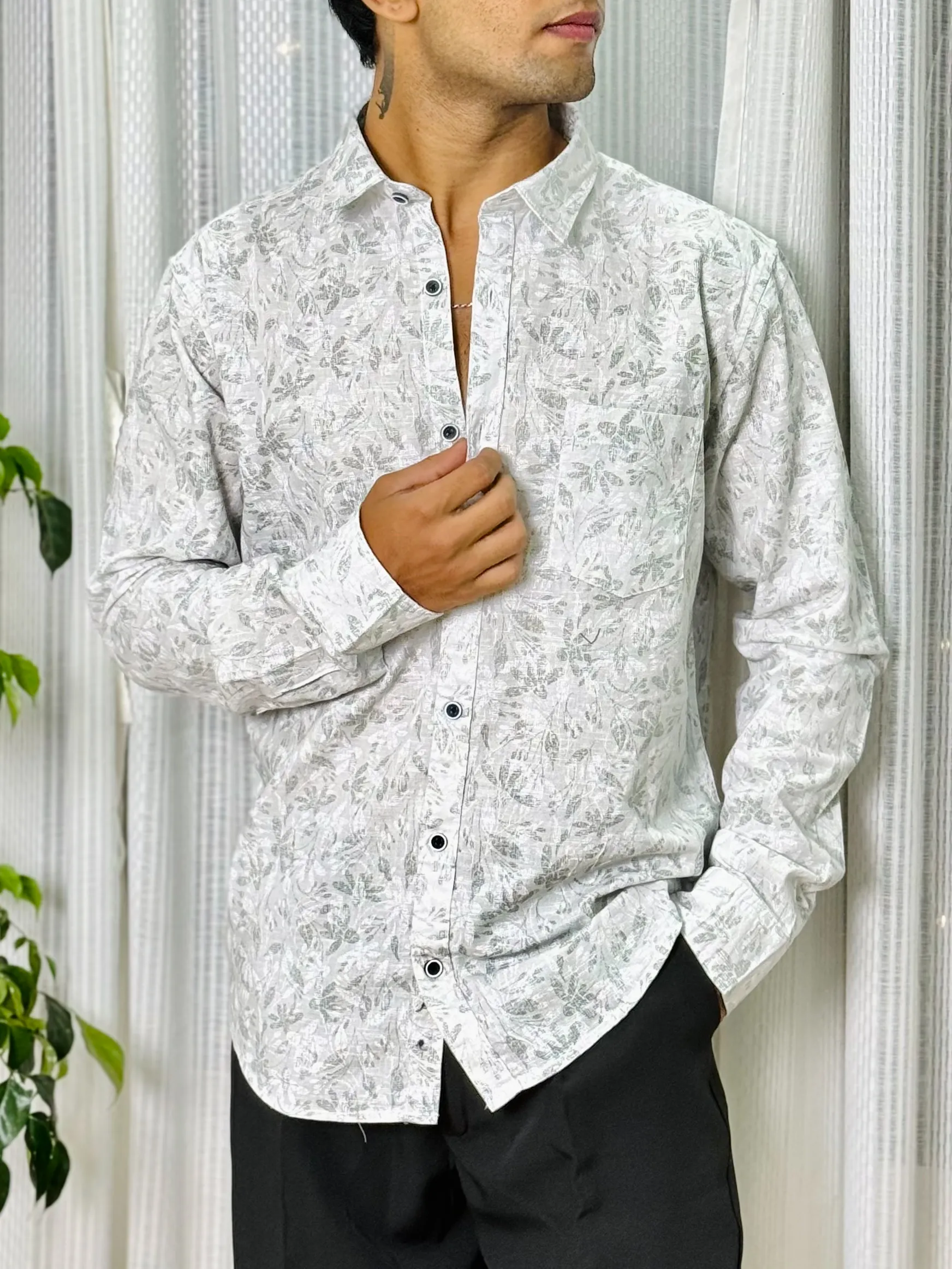 Stand out with this white floral printed shirt, made from 100% pure cotton for a soft and breathable touch. The subtle leafy pattern adds a stylish twist to the classic design, offering a fresh take on everyday wear. Its comfortable, full-sleeve structure and eye-catching print make it an ideal choice for both casual outings and lively gatherings.
